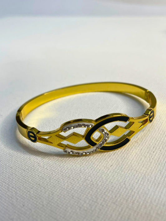 Golden Interlock Bracelet with Crystal Detailing – Timeless Elegance