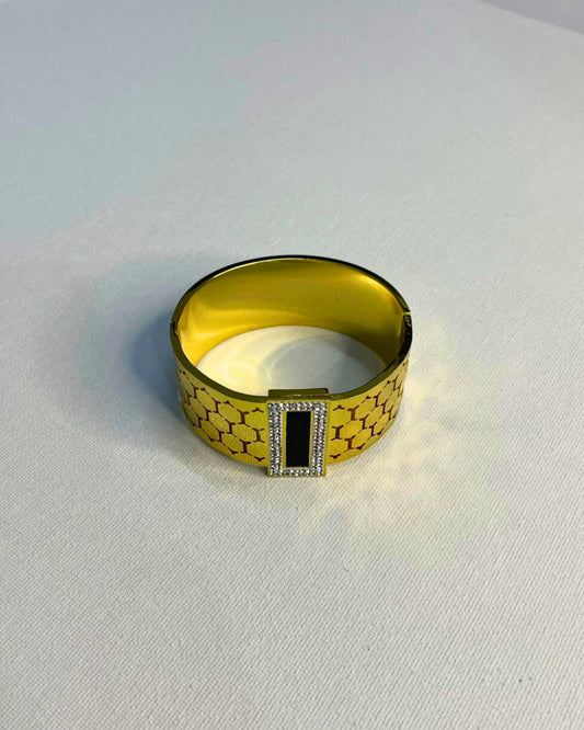 Golden Honeycomb Cuff Bracelet with Dazzling Oval Crystal Buckle