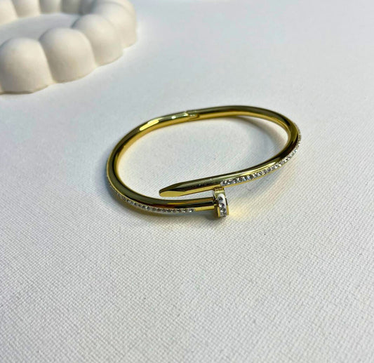 Golden Heart Nail Bracelet with Sparkling Crystal Accent