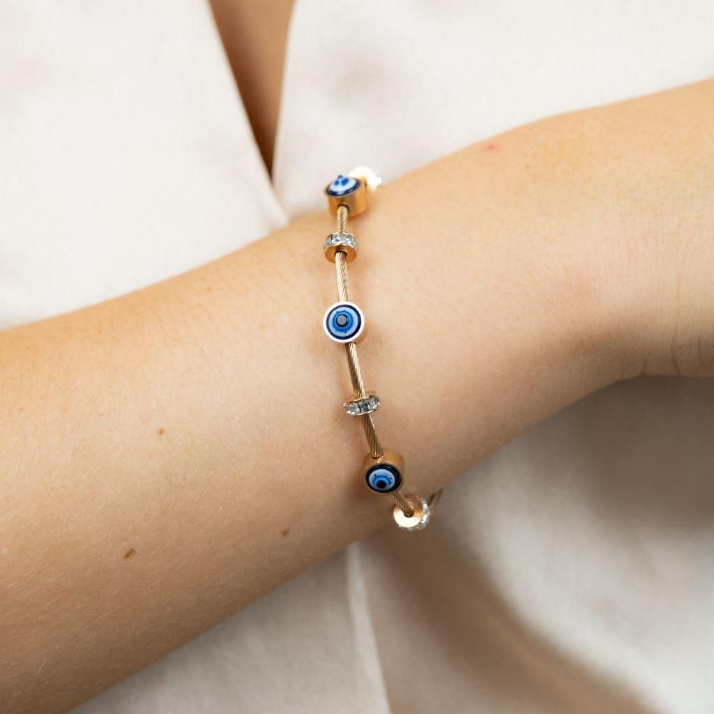 - Design: Contemporary evil eye motif with sparkling zircon details