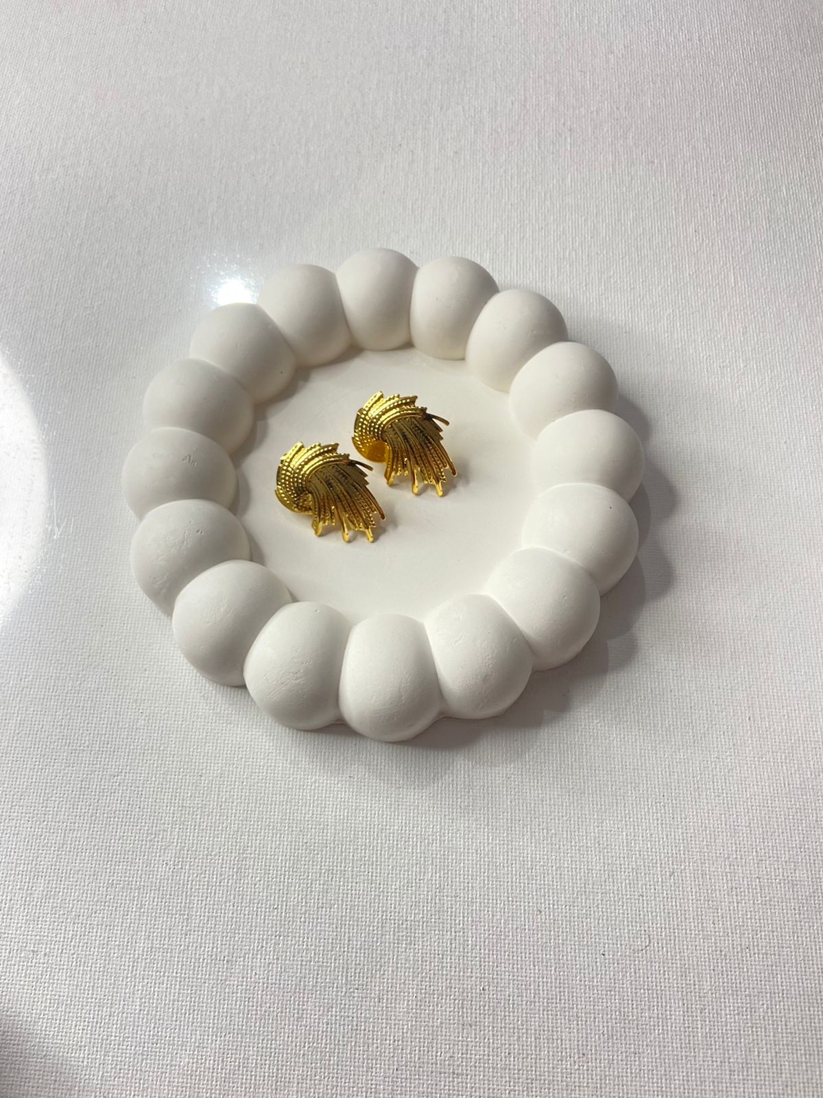 Add a touch of glamour and sophistication to your style with these stunning Golden Feather Cascade Earrings. Inspired by flowing feather-like strokes, their unique layered design captures movement and light beautifully, making them the perfect statement piece for any occasion.
